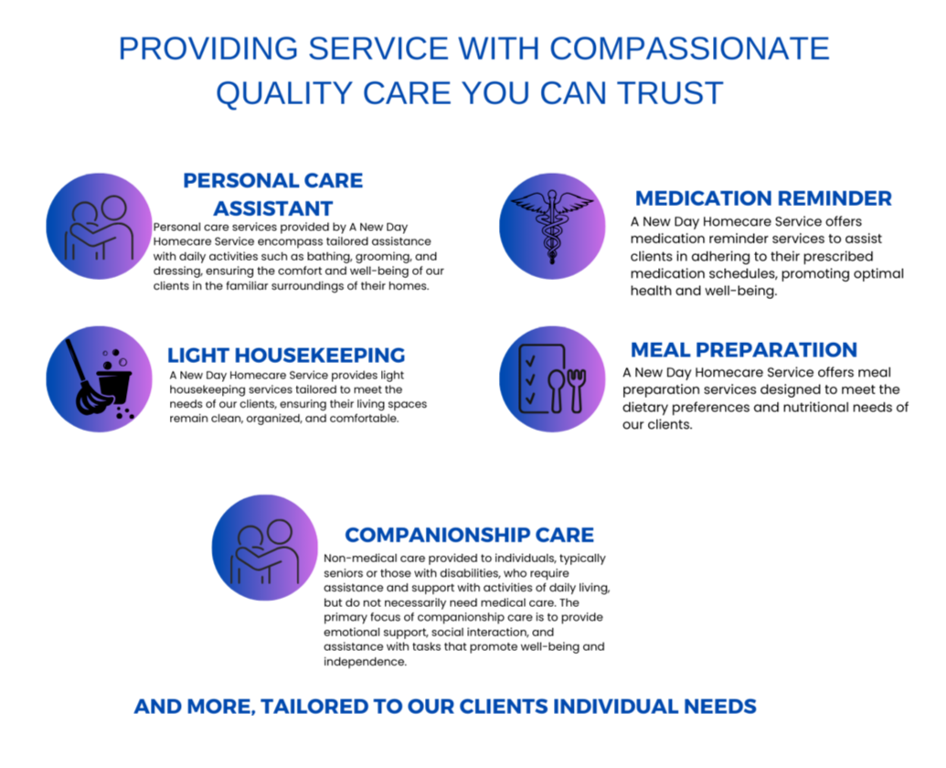 At A New Day Homecare Services, our mission is to empower seniors and individuals with disabilities to live comfortably and confidently in the familiarity of their own homes. Everyday is “A New Day”, and we are committed to delivering personalized compassionate quality care with loyalty and trust by promoting independence and fostering meaningful connections within our community.